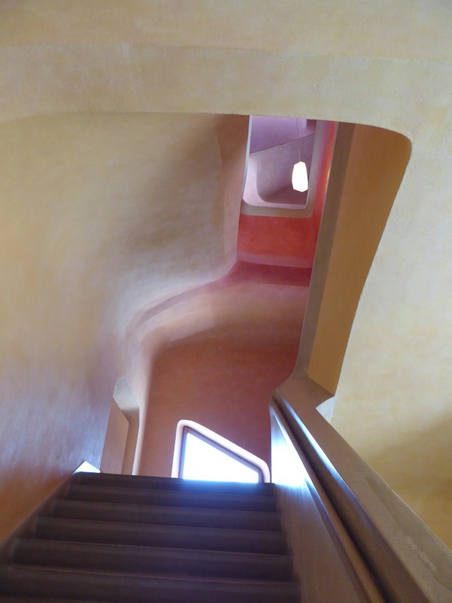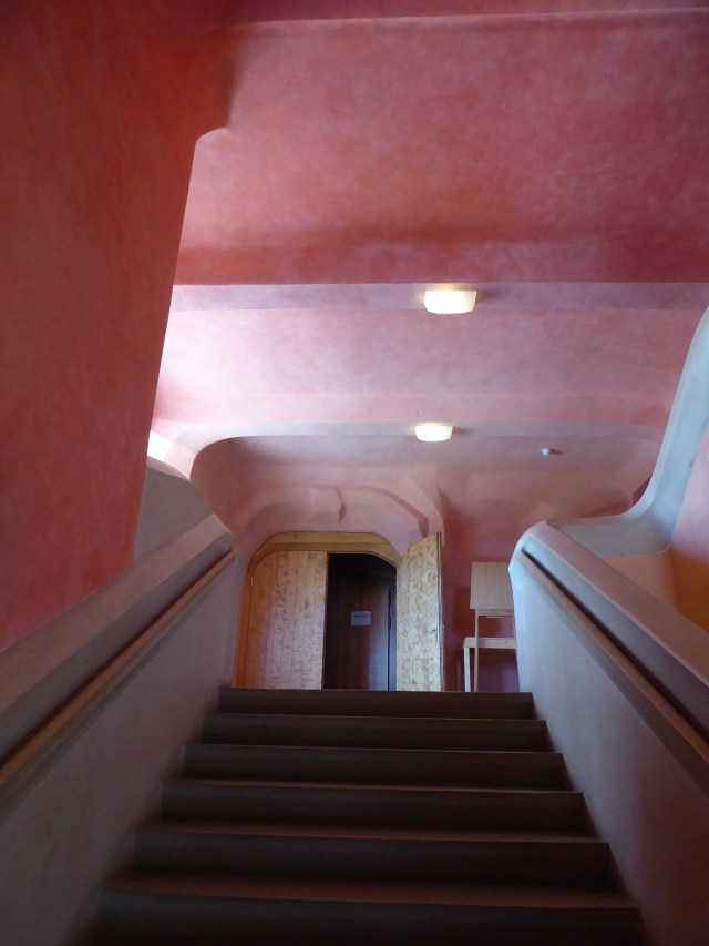 Anthroposophy is a very complex philosophy and I can’t go into details here. One aspect of it, however, is worth mentioning here: the idea that forms should be organic. That’s why the architecture is so stunning. The are no sharp angles or rectangles. Everything is rounded or many angled. The color scheme is very unique too. I’d call them strong pastels.